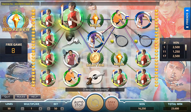 Один из лидеров онлайн слотов на азиатском рынке — XIN Gaming – также не упустил возможности выпустить слот на олимпийскую тематику. Поскольку Чемпионат Европы не прошел мимо разработчика, в связи с которым вышла игра Euro Football Champ, поэтому новый слот Rio Fever от XIN Gaming был довольно предсказуемым событием. У него, как и у предшественника, 5 барабанов и 4 ряда, но вместо 21 – целых пятьдесят линий выплат. Дикий символ здесь в виде олимпийского факела – а за фриспины в ответе «золотая медаль».